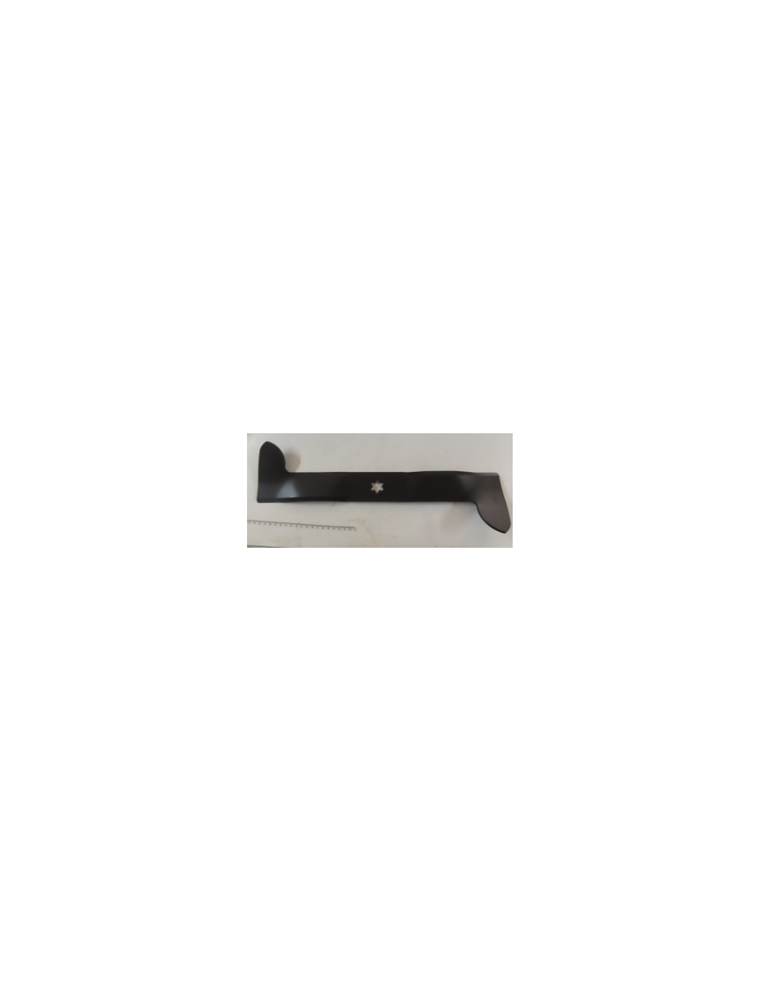 La lame mulching gauche soufflante 46 cm à fixation 6 étoiles, compatible avec AYP, Husqvarna et Bernard Loisirs, remplace directement les références 165561, 170038 et 405493.